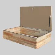 Zateplené půdní schodiště s masivní dřevěnou obkladovou schránkou. Rozměr 120 x 70 cm.