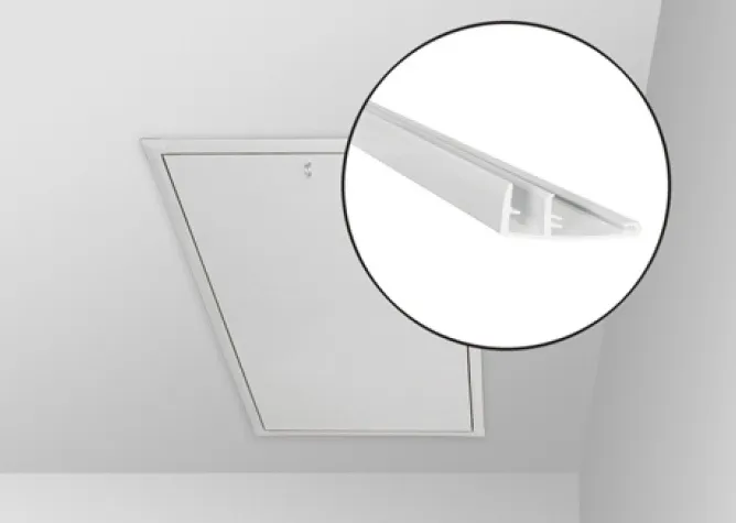 Půdní schody Fakro LMK Komfort jsou vybaveny poklopem bílé barvy a madlem usnadňujícím pohyb po ...