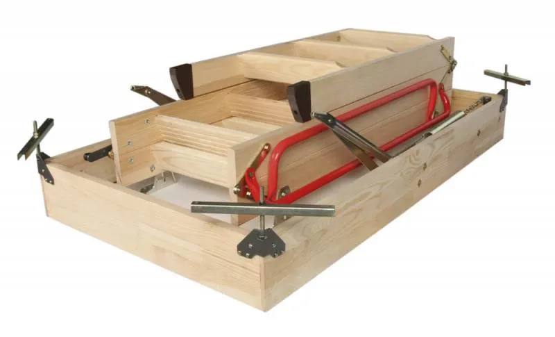 Půdní schody LWZ Plus s dřevěným žebříkem. Rozměr 70 x 120 cm, výška místnosti 280 cm.