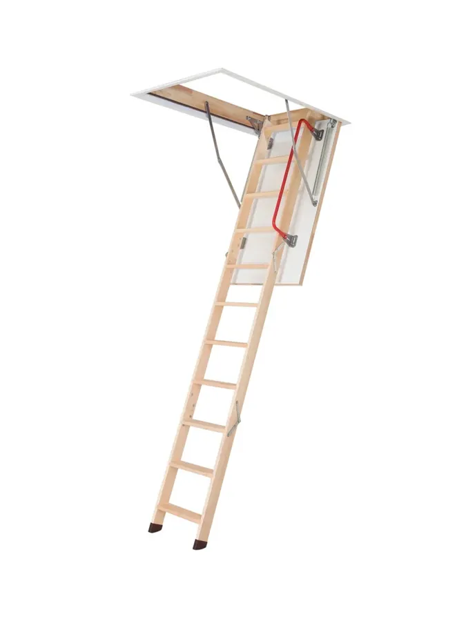Stahovací půdní schody Fakro LST jsou standardně vybaveny bílým zatepleným poklopem, dřevěnou ...