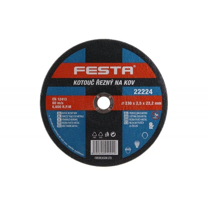 Řezný kotouč na kov značky Festa. Průměr 115 mm. Tloušťka kotouče 1,2 mm. Průměr středu 22,2 mm.