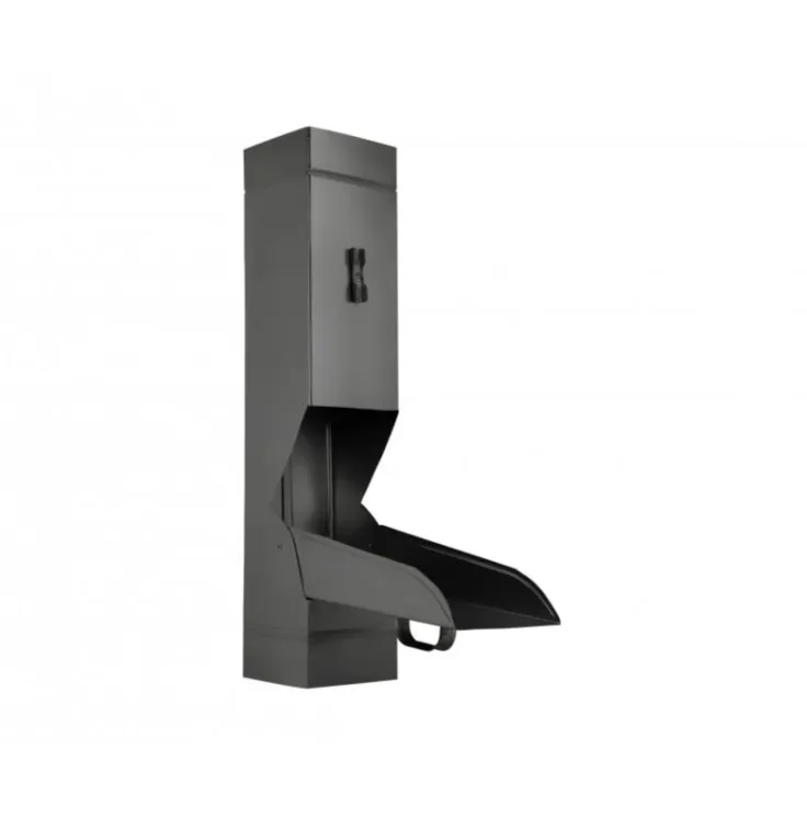 KJG výtok do sudu hranatý (výklopka) do svodu o rozměru 100x100 mm. Slouží k zachytávání dešťové vody do sudu nebo nádrže.