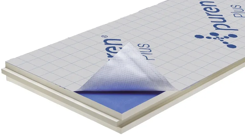 puren Plus z vysoce účinné tvrdé PIR (polyuretanová) izolace má speciální povlak z rouna, který je oboustranně difuzně otevřený. Střešní izolační systém je navíc nahoře laminován samolepicí, difuzně otevřenou podkladní membránou Diffucell®.
