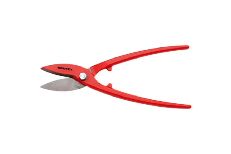 "Mikro verze" klempířských nůžek tzv. pelikánek s ĺakovanými rukojeťmi. Délka 245 mm.