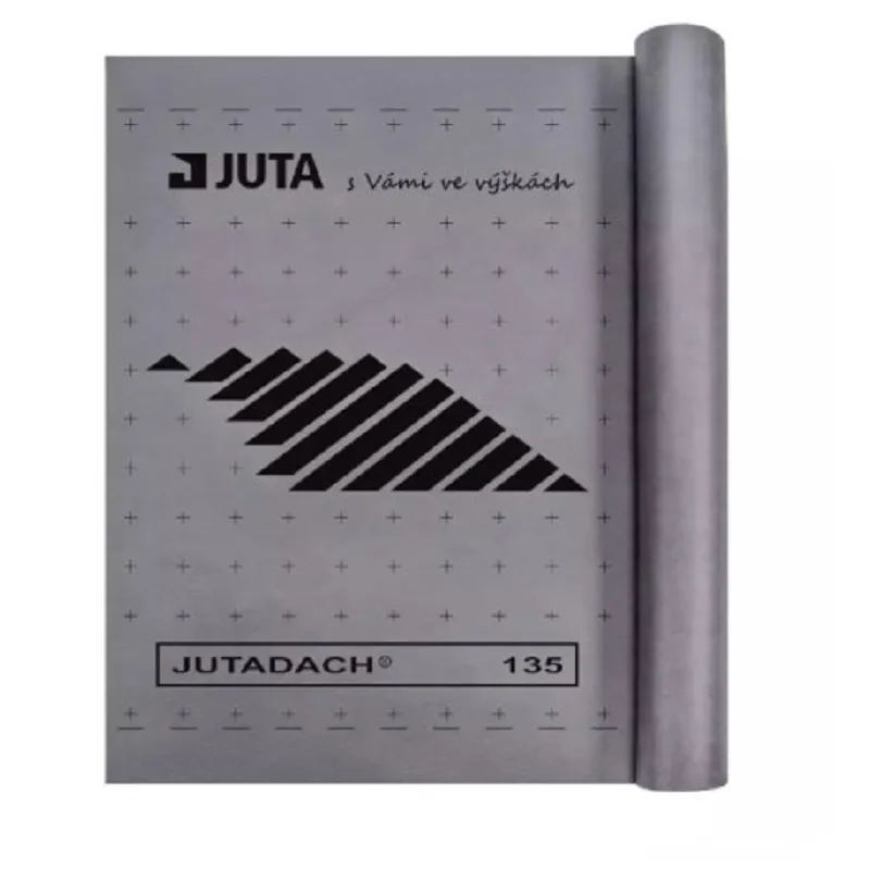 Vysoce difúzní podstřešní membrána Jutadach 135 Plus® odvádí vodní páry z konstrukce ven, vytváří uzavřený systém pro tepelnou izolaci, která je chráněná před zafoukaným deštěm, sněhem, prachem při extrémním počasí. Při slepených spojích plní funkci větrozábrany, čímž zvyšuje účinnost tepelné izolace. Varianta s integrovanými aplikačními páskami Jutadach 2AP® pro snadný a rychlý spoj. Role je široká 1,5 m s návinem 50 bm. Membránu Jutadach® lze použít jako kontaktní i nekontaktní doplňkovou (pojistnou) hydroizolaci do bedněných systémů šikmých střech. Všechny podstřešní membrány mohou být použity i v provětrávaných fasádních konstrukcích bez vlivu UV záření. Sd = 0,02 m, plošná hmotnost 135 g/m2, reakce na oheň E.
