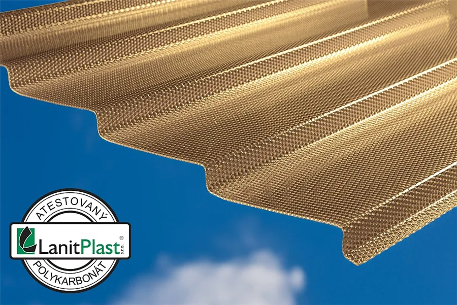 Bronzová (kouřově hnědá) vlnitá polykarbonátová deska s šestihrannou povrchovou strukturou profil ...