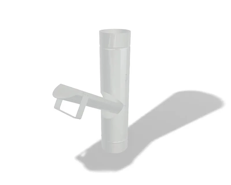 Koleno 72° k hliníkovému okapovému svodu o průměru 80 mm značky Prefa. Barva světle šedá.
