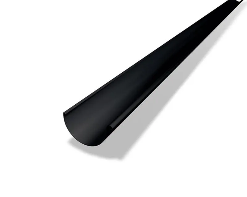 Hliníkový okapový žlab rozvinuté šíře 333 mm, délky 3 m, značky Prefa. Barva černá, povrch P.10.