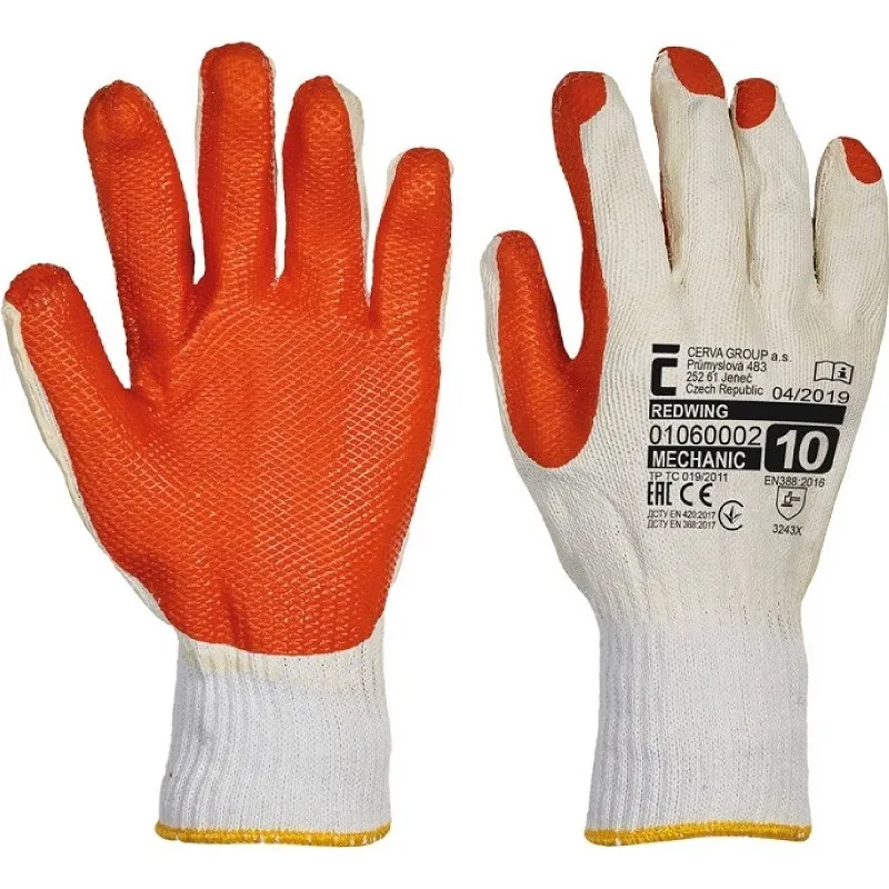 Pletené bezešvé nylonové rukavice CERVA DIPPER, polomáčené v latexu. Rukavice mají v dlani a na ...