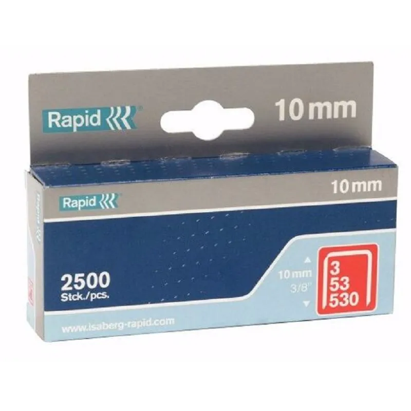 Náhradní sponky značky Rapid do sponkovaček a sponkovacích kladiv. Délka sponky 53 mm, výška sponky 8 mm. Balení v papírové krabičce po 2500 ks.
