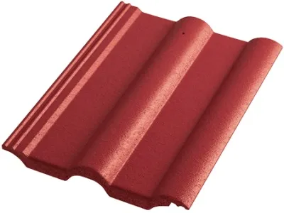 Krajová pravá taška betonové střešní krytiny Bramac Max Protector P5 cihlově červené barvy.