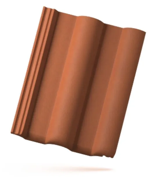 Základní taška betonové střešní krytiny Bramac Classic NOVO cihlově červené barvy. Povrch střešní tašky Classic NOVO je sametově polomatný, hladký a je opatřen dvojnásobným nástřikem disperzní barvy.
