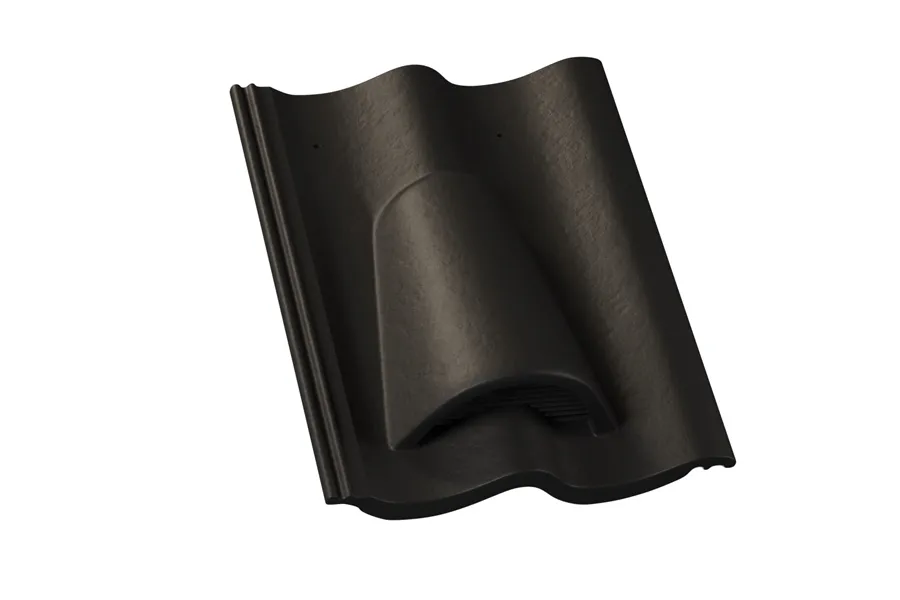 Betonová odvětrávací taška střešní krytiny Bramac Classic Protector Plus ebenově černé barvy.