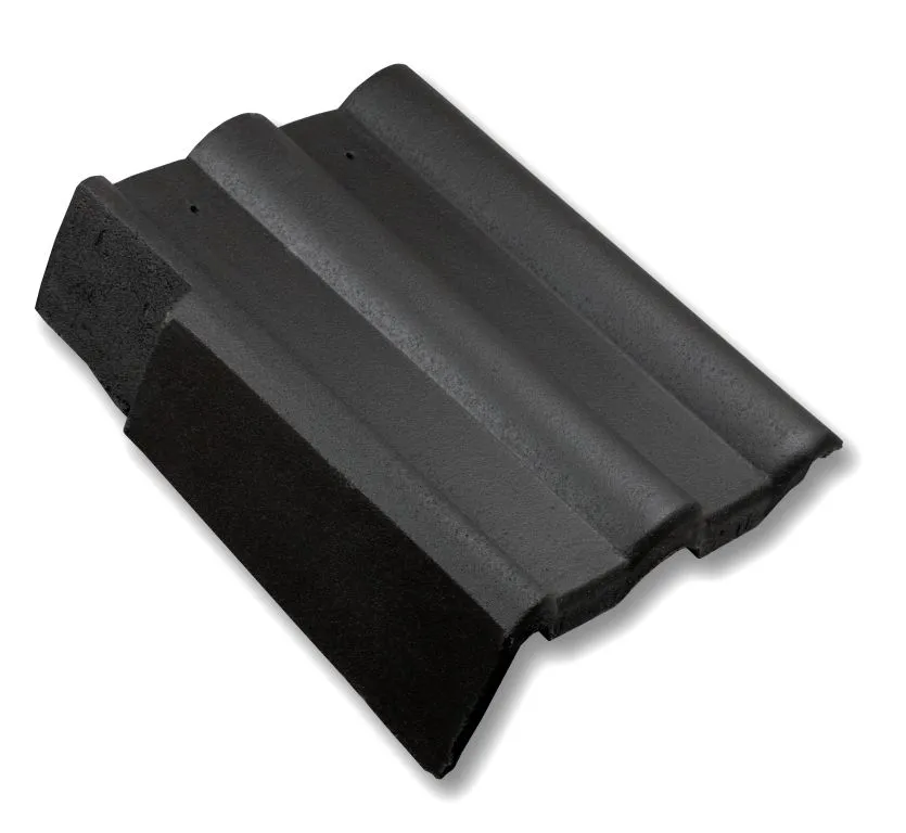 Betonová krajová levá taška klasického tvaru, model Finkenberger od německého výrobce, firmy Nelskamp. Slouží k elegantnímu zakončení střešní krytiny u štítové hrany střechy. Při pohledu na plochu střechy se používají vlevo.