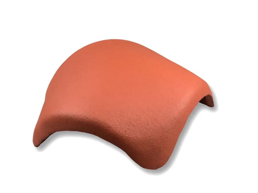 Betonový rozdělovací hřebenáč německého výrobce, firmy Nelskamp. Slouží k překrytí spoje vrcholu střechy (hřebene) se dvěma nárožími.
