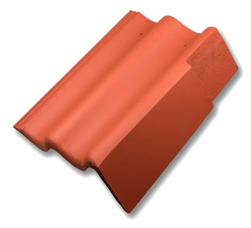 Betonová krajová pravá taška s kulatou symetrickou vlnkou, model Sigma od německého výrobce, firmy Nelskamp. Slouží k elegantnímu zakončení střešní krytiny u štítové hrany střechy. Při pohledu na plochu střechy se používají vpravo.