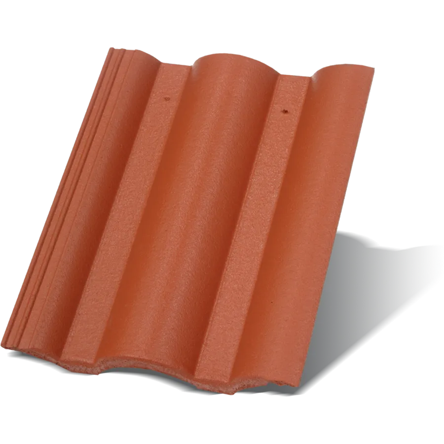 Krajová levá taška betonové střešní krytiny Terran Danubia EVO v barvě korall.