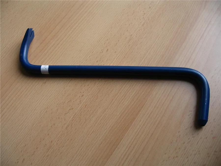 Páčidlo ve tvaru L. Pomůcka na vytahování hřebíků a demontáž některých konstrukcí,