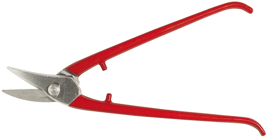"Mikro verze" klempířských nůžek tzv. pelikánek s ĺakovanými rukojeťmi. Délka 245 mm.