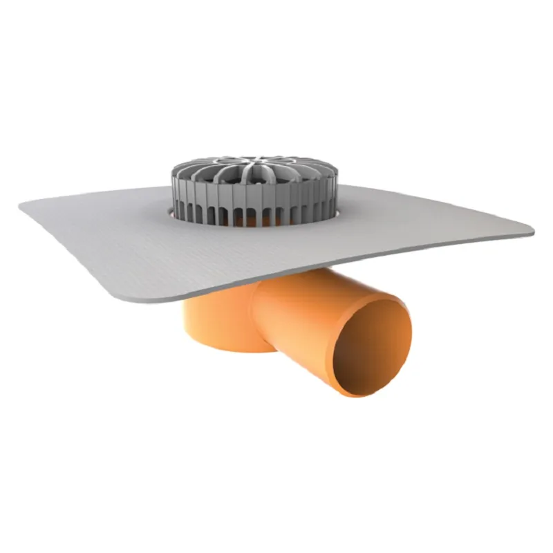 Vodorovná střešní vpust (střešní vtok) s integrovanou PVC manžetou (hydroizolační fólie na bázi ...