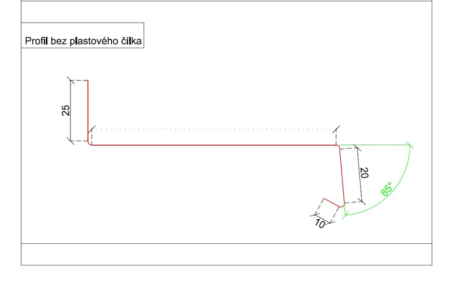 Venkovní parapet v profilu bez plastové čílka (PVC krytky)Cena parapetu je uvedená pro rozměr 1 m x 0,25 m.